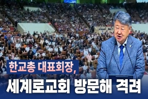 한국교회총연합(한교총) 대표회장 김종혁 목사(울산 명성교회)가 부산 세계로교회 수요예배를 찾아 설교를 전하고 성도들을 위로했다.그는 지난 9월까지 예장 합동 총회장이기도 했다.김종혁 대표회장은 “총회장직에서 퇴임하기 전, 우리 손현보 목사님 이야기를 듣고 교단에서 성명…