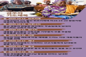 10/13 튀르키예: 기독교인이 1% 뿐인 튀르키예에 마28:19-20 말씀처럼 복음이 확산되도록.10/14 브루나이: 종교 경찰의 면밀한 감시에도 무슬림에게 담대히 전도하는 교회가 되도록.10/15 튀니지: 개종한 성도들이 기독교를 거부할지 모를 무슬림 동료들을 전도…