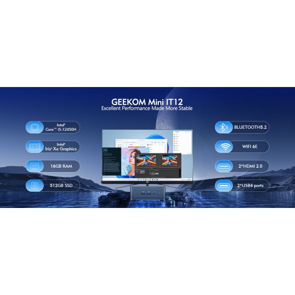 [Excellent Performance] GEEKOM Mini IT12 NUC12 Mini PC is equipped with Newest 12th Gen Intel Core i5-12450H processor(8 cores, 12 threads), 12MB…