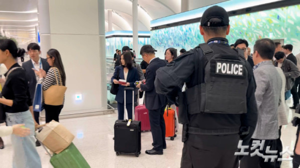 탑승 시간이 되자 무장 경력을 포함한 인천공항경찰단 소속 경찰관들이 게이트 앞에 나와 한국인 탑승객들을 대상으로 일일이 캄보디아 방문 일정, 목적 등을 물었다.