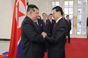 ▲ 김정은 북한 국무위원장이 노동당 창건 80주년 경축 행사 참석차 방북한 통룬 시술릿 라오스 국가주석과 지난 7일 회담했다고 조선중…